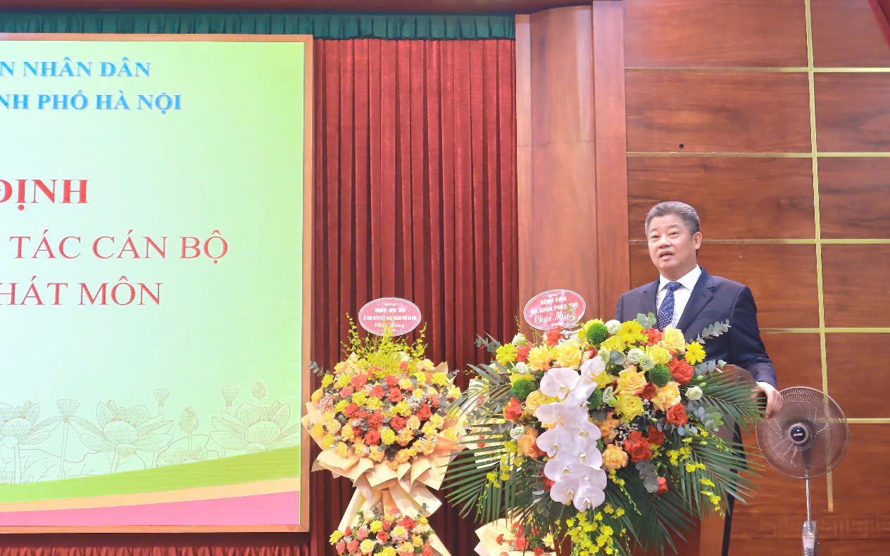 Phó Chủ tịch UBND thành phố Nguyễn Mạnh Quyền trao quyết định của Ban Thường vụ Thành ủy Hà Nội về việc chỉ định Ban Chấp hành Đảng bộ, Ban Thường vụ Đảng ủy, các chức danh Bí thư, Phó Bí thư; Ủy ban Kiểm tra Đảng ủy cấp xã Hát Môn nhiệm kỳ 2025-2030.
