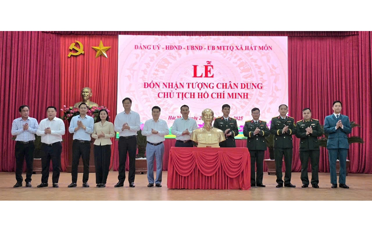 Đảng ủy, HĐND, UBND, UB MTTQ Việt Nam xã Hát Môn đón nhận Tượng chân dung Chủ tịch Hồ Chí Minh